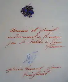 La mention dessiné et entièrement peint à la main par Le Tallec à Paris France est également apposée. À cela peut parfois s'ajouter une dédicace particulière pour un acheteur, ou un Tiffany's private stock pour les décors dessinés pour le joaillier américain.
