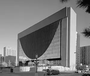 Les premiers projets prévoyaient, au-dessus du bâtiment, une structure complémentaire en chaînette inversée, donnant à l'ensemble une forme proche de l'ovale[1]. Le bâtiment est certainement à l'origine de l'idée d'ajouter un pont d'observation au-dessus de l'arc caténaire très spectaculaire du Kingdom Centre de Riyad. L'entreprise locale de conception de bâtiments Ellerbe Becket a contribué à l'élaboration de cette structure[2].
