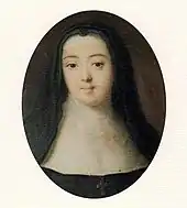 Le 17 mai 1763, le mariage du marquis et de Renée-Pélagie, fille aînée de Cordier de Montreuil, président honoraire[N 7] à la cour des Aides de Paris, de petite noblesse de robe, mais dont la fortune dépasse largement celle des Sade, est célébré à Paris en l'église Saint-Roch. Les conditions financières ont été âprement négociées par le comte de Sade et la présidente de Montreuil[18], femme énergique et autoritaire. Il n'existe pas de portrait de Renée-Pélagie qui manque peut-être d'agréments. Le comte de Sade, la voyant pour la première fois, la décrit ainsi à sa sœur :
