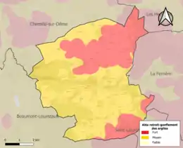 Le retrait-gonflement des sols argileux est susceptible d'engendrer des dommages importants aux bâtiments en cas d’alternance de périodes de sécheresse et de pluie. La totalité de la commune est en aléa moyen ou fort (90,2 % au niveau départemental et 48,5 % au niveau national). Sur les 235 bâtiments dénombrés sur la commune en 2019, 235 sont en aléa moyen ou fort, soit 100 %, à comparer aux 91 % au niveau départemental et 54 % au niveau national. Une cartographie de l'exposition du territoire national au retrait gonflement des sols argileux est disponible sur le site du BRGM[23],[24].
