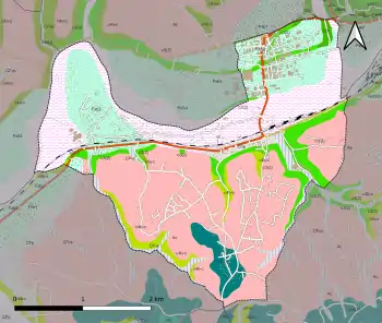 L'occupation des sols de la commune, telle qu'elle ressort de la base de données européenne d’occupation biophysique des sols Corine Land Cover (CLC), est marquée par l'importance des territoires artificialisés (56,5 % en 2018), en augmentation par rapport à 1990 (37,5 %). La répartition détaillée en 2018 est la suivante : zones urbanisées (39,1 %), forêts (31,3 %), zones agricoles hétérogènes (12,2 %), zones industrielles ou commerciales et réseaux de communication (9,8 %), espaces verts artificialisés, non agricoles (7,6 %)[36]. L'évolution de l’occupation des sols de la commune et de ses infrastructures peut être observée sur les différentes représentations cartographiques du territoire : la carte de Cassini (XVIIIe siècle), la carte d'état-major (1820-1866) et les cartes ou photos aériennes de l'IGN pour la période actuelle (1950 à aujourd'hui)[Carte 3].