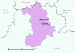 La loi du portant nouvelle organisation territoriale de la République (dite loi NOTRe), visant une réduction du nombre d'intercommunalités en France, fait en effet passer le seuil démographique minimal de 5 000 à 15 000 habitants, sauf exceptions, et a un impact sur les périmètres des différentes intercommunalités. Le schéma départemental de coopération intercommunale du Loiret est arrêté sur ces bases le et le nombre d'établissements publics de coopération intercommunale à fiscalité propre passe dans le département du Loiret de 28 (2 communautés d'agglomération et 26 communautés de communes) à 16 (deux communautés d'agglomération et 14 communautés de communes dont une interdépartementale)[41]. Les communautés de communes de Beauce et du Gâtinais, du Cœur du Pithiverais et du Plateau Beauceron fusionnent ainsi à compter du en une seule entité : la communauté de communes du Pithiverais, dont le siège est à Pithiviers. Cette nouvelle intercommunalité comprend 31 communes dont Marsainvilliers[42].