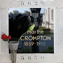 En , fréquentant les immigrés anglais vivant à Paris, elle épouse le Britannique Thomas Crompton, directeur financier de la fondation Rockefeller, mécène de la restauration du Petit Trianon, qui meurt subitement en 1928 d'une crise d'urémie à Genève. Thomas Crompton a pris des dispositions testamentaires pour qu'elle reçoive de la part de la fondation Rockefeller une rente mensuelle de 2 000 francs[14], indexée sur le coût de la vie. Elle mène alors grand train à Bougival et passe ses soirées dans les boîtes à la mode, ce qui lui vaut le surnom de « veuve joyeuse ». Parallèlement, on la suspecte de voler dans des bureaux d'études en aéronautique des plans de fabrication pour l'Intelligence Service[15].