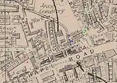 - Pastilles rouges: Morgue d'Old Montague Street (intérieur et cour).
