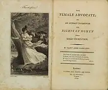- La femme avocate ou une tentative de récupérer les droits des femmes de l'usurpation masculine . Par Mary Anne Radcliffe. Londres: Imprimé pour Vernor et Hood, NO. 31, volaille, 1799