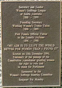 « ... Monsieur, cette grève a une caractéristique qui la rend plus profondément intéressante que celles d'avant... qui doit écrire une page importante et distinguée où l'histoire de ces colonies doit être écrite[style à revoir]. Les femmes de Broken Hill sont le premier grand corps de travailleuses à élever leurs voix dans une protestation unie pour protester[style à revoir] contre l'injustice flagrante que la constitution actuelle ne les autorise pas à exprimer leur opinion dans l'encadrement des lois[style à revoir][1]... »