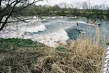 Le mot anglais bore est utilisé pour décrire une crête d'eau se déplaçant en présence d'eaux peu profondes. Ce phénomène est appelé en français un ressaut hydraulique (parfois « saut de Bidone (it) »[12],[13]). Lorsque le nombre de Froude est compris entre 1 et un nombre compris entre 1.4 et 1.7, le ressaut est accompagné d'un train d'ondulations à la surface. Elles sont appelées en anglais whelps (traduction littérale chiot)[14]. La crête d'eau est alors appelée mascaret ondulant.