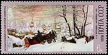 En 1978, la série 100 ans depuis la naissance de Koustodiev (1878—1927), comprend 5 timbres-poste, dont un avec la reproduction du tableau Maslenitsa.