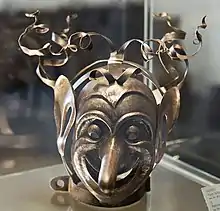 La forme évolue par la suite vers une sorte de cage qui enferme la tête et devient, appliqué sur le visage, un masque de métal comportant des trous pour la bouche, le nez et les yeux[1].