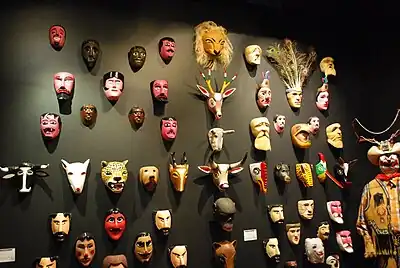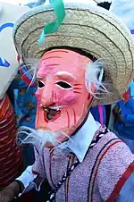 D'autres danseurs avec des personnages plus âgés comprennent la version des Mixtèques à Cuilapan de Guerrero (en), Oaxaca. Celle-ci est dansée en juillet et en août, la danseuse principale se distinguant par un masque au nez exceptionnellement long[58]. Dans la danse pascola du nord-ouest du Mexique, l'un des personnages est appelé « le vieil homme du festival ». Toutefois, le masque de ce personnage peut avoir un visage humain ou des traits d'animaux tels que ceux du singe ou du bouc[59].