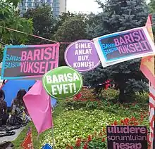 Des manifestations majeures ont suivi dans les villes à prédominance kurde de Turquie[15]. À Diyarbakır, les manifestations sont devenues violentes, la police utilisant des matraques et des gaz lacrymogènes contre des manifestants qui lançaient des pierres et des cocktails Molotov sur la police[16]. Des manifestations ont également eu lieu à Ankara[17] et à Istanbul, où plus de 1 000 manifestants se sont rassemblés sur la place Taksim ; ils ont jeté des pierres sur la police et détruit des véhicules avant que la police ne disperse la foule avec des gaz lacrymogènes et des canons à eau[18].