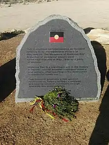 En , un petit mémorial en granit est érigé à Hamp, sur le site de la hutte. Au début des années 1970, les lieux des événements qui ont conduit au massacre ont été marqués par P. J. Baillie. Il s'agit notamment des sites des huttes de Beevor et d'Easton, de l'arbre auquel les meurtriers de Beevor ont été pendus et de la tombe d'Easton au lac Hamilton. Jusqu'en 2017, aucun mémorial n'avait été érigé à la mémoire des autochtones tués avant ou pendant l'affrontement fatal[32]. En , il est rapporté qu'un mémorial de ces événements, à Waterloo Bay, avait été inauguré par le conseil local d'Elliston[33] et après quelques discussions dans le district sur la question de savoir si ce qui s'y est passé devait être qualifié de massacre ou d'incident[34], le conseil a convenu d'inclure le mot « massacre » sur la plaque[35],[36].
