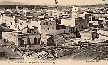 Tous les éléments de ce contexte général sont aggravés au niveau local. La ville compte 142 000 habitants, avec plus de 100 000 musulmans (dont 6 000 Algériens[2],[1]), 13 000 Juifs, 21 000 Européens[1]. La garnison française dans la région de Meknès est une des plus importantes du Maroc, avec 8 000 hommes dont trois bataillons en ville. Les casernes représentent un quart de la superficie de la ville et abritent l'école d'officiers indigènes du Maroc de l'armée française, le Dar el Beïda[1]. Dans la région, les terres agricoles appartiennent essentiellement à des étrangers[2].
