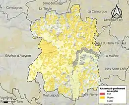 Carte des zones d'aléa retrait-gonflement des sols argileux de Massegros Causses Gorges.