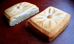 Le massepain cuit est un petit gâteau confectionné à base d'amandes mondées et finement moulues, mélangées à du blanc d'œuf et du sucre, moulé dans une forme et cuit à feu doux.
