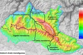 - Urkitza, 915 m 42° 57′ 54″ nord, 2° 32′ 25″ ouest (Alava et Guipuscoa)