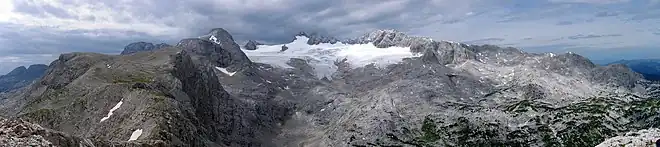 La chaîne du Dachstein comprend trois grands glaciers, qui sont les plus septentrionaux et les plus à l'est de toutes les Alpes :