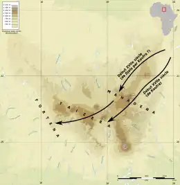 Le début du XVIIe siècle a également vu l'arrivée de trois clans originaires de la région de Koufra, au nord-est. Les Taïzera se sont installés sur les plateaux dans la moitié occidentale et le centre du massif. Fuyant probablement la poussée arabe dans l'actuelle Libye, ils ont dans un premier temps été rejetés par les clans d'origine daza et ont d'abord vécu isolés, avant d'investir les oasis et d'y planter de nombreux palmiers. Les Mahadena ont occupé le quart nord-est du massif. Ils pourraient être issus de la région Jalo en Cyrénaïque et être liés aux Arabes Mogharba, mais une autre hypothèse voudrait qu'ils soient d'origine bideyat. À la suite d'un conflit d'héritage, la branche cadette de ce clan, les Fortena, s'est retirée vers la marge occidentale du massif. Les Fortena Mado (« Fortena rouges ») s'y sont installés tandis que les Fortena Yasko (« Fortena noirs ») ont poussé plus à l'ouest, notamment vers le Kaouar[57].