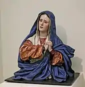 Une approche particulière apparaît au XVIe siècle avec les représentations de la seule Mère éplorée et des gros plans de son visage qui constituent des portraits où la connotation religieuse est apportée par le titre et par certains codes qui demeurent comme la couleur bleue du vêtement. Les représentations de sujets profanes et particulièrement des portraits s'installent en effet avec les primitifs flamands comme Van Eyck au XVe siècle avant de gagner l'art italien de la Renaissance. Ainsi Véronèse aborde les scènes bibliques en cherchant leur aspect émotif plutôt que leur côté symbolique[18]. C'est également le cas des tableaux intitulés « Mater dolorosa » comme ceux du Titien (vers 1554, musée du Prado, Madrid), Le Gréco (1585-1590, Staatliche Museen Preussischer Kulturbesitz, Berlin), Rembrandt (1660, Musée departemental d'art ancien et contemporain, Épinal) ou José de Ribera (1638, Staatliche Museen, Kassel).