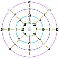 Les plus anciens carrés magiques d'ordre supérieur à trois sont attribués à Yang Hui (vers 1265) ; il travailla avec des carrés d'ordre allant jusqu'à dix, donnant plusieurs exemples pour chaque ordre[37] ; il inventa également les cercles magiques (en).