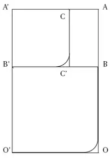 Notons la hauteur OA et la largeur OO' d'un rectangle . Soit le point de tel que OB soit égal à . Procédons de même pour construire sur le segment .