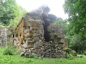 Du côté sud de l'église se trouve une bibliothèque, C'est une petite pièce couvert d'une voûte, qui est en très mauvais état et dont les murs sont à moitié détruits. Dans le mur sud est percée une fenêtre et dans le mur oriental une entrée. Les traces subsistent de tous ces éléments (église, bibliothèque, porche) mais est en très mauvais état. L'absence de dôme provoque une humidité intérieure et accélère le processus de destruction du monument.