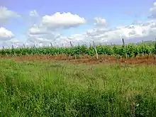 L'occupation des sols de la commune, telle qu'elle ressort de la base de données européenne d’occupation biophysique des sols Corine Land Cover (CLC), est marquée par l'importance des territoires agricoles (80,6 % en 2018), une proportion identique à celle de 1990 (80,7 %). La répartition détaillée en 2018 est la suivante : terres arables (63,7 %), forêts (19,3 %), cultures permanentes (12,2 %), zones agricoles hétérogènes (4,7 %)[16]. L'évolution de l’occupation des sols de la commune et de ses infrastructures peut être observée sur les différentes représentations cartographiques du territoire : la carte de Cassini (XVIIIe siècle), la carte d'état-major (1820-1866) et les cartes ou photos aériennes de l'IGN pour la période actuelle (1950 à aujourd'hui)[Carte 2].