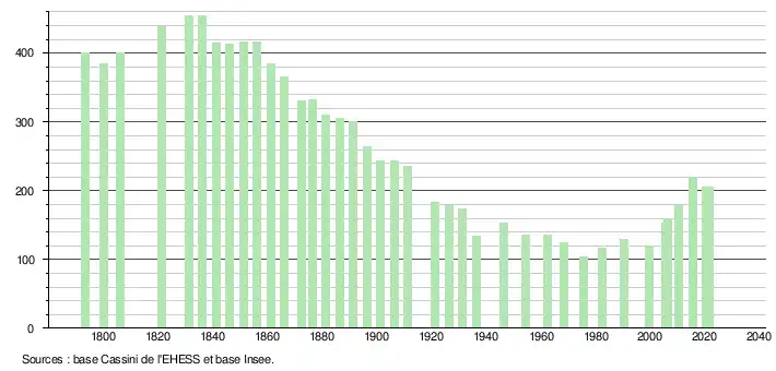 - Population municipale légale en vigueur au 1er janvier 2024, millésimée 2021, définie dans les limites territoriales en vigueur au 1er janvier 2023, date de référence statistique : 1er janvier 2021.