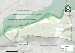 - « la Garonne et milieux riverains, en aval de Montréjeau » (6 874 ha), couvrant 93 communes dont 64 dans la Haute-Garonne, trois dans le Lot-et-Garonne et 26 dans le Tarn-et-Garonne[27] ;