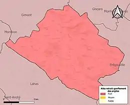 Le retrait-gonflement des sols argileux est susceptible d'engendrer des dommages importants aux bâtiments en cas d’alternance de périodes de sécheresse et de pluie. La totalité de la commune est en aléa moyen ou fort (94,5 % au niveau départemental et 48,5 % au niveau national). Sur les 133 bâtiments dénombrés sur la commune en 2019, 133 sont en aléa moyen ou fort, soit 100 %, à comparer aux 93 % au niveau départemental et 54 % au niveau national. Une cartographie de l'exposition du territoire national au retrait gonflement des sols argileux est disponible sur le site du BRGM[20],[Carte 3].