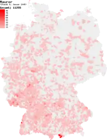 Répartition du nom de famille Maurer en Allemagne (2005)