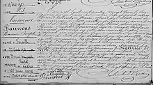 - Acte de naissance de Maurice Bauwens avec mentions marginales de mariages et de décès. Registre des Naissances commune de Leers, année 1883. F° 2 verso.