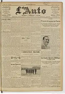 - « L'Auto-vélo : automobilisme, cyclisme, athlétisme, yachting, aérostation ... du 22 janvier 1913. Page 1. », sur Bnf Gallica