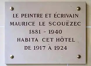« L'œuvre de Maurice Le Scouëzec est marquée par une constante recherche de la vérité. Il prenait toujours un peu de recul sur son sujet pour en retranscrire sa vision du réel. On le voit bien à travers son choix des couleurs, la force et l'économie de son trait. Sa vie suit également ce cheminement. Malgré un début de carrière militaire, c'est un insoumis, condamné pour désertion. Dans son métier de peintre aussi il déserte. Tournant le dos au monde de l'art, alors qu'il expose dans les mêmes galeries que Lautrec, Picasso, est l'ami de Modigliani et tant d'autres. Il fuit les marchands de tableaux et part pour de longs séjours en Afrique. Son œuvre passera d'ailleurs un peu inaperçue jusqu'au milieu de la décennie 1980, lorsque son fils exhuma de la maison familiale un grand nombre de ses tableaux. Après une hémorragie cérébrale à Landivisiau en 1935, arrive la dernière phase de sa vie qu'il passera à Douarnenez, 1, rue du Centre. Sa peinture change, devient plus sensible, mais reprend toujours les mêmes obsessions. Sa manière de reconstruire des bâtiments, comme des blocs sans fenêtres, ses paysages minimalistes, ses corps tout en postures, où les couleurs remplacent les ombres[7]. »