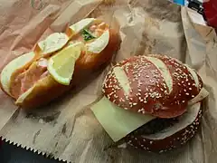 | Ingrédients | Pain brioché (bretzel) garni d'ingrédients variés |