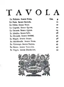 Table des douze sonates de l'opus 55 (1670). - opus 49 : Diport spirituali per camera e per oratorii (Bologne, 1668) — dédiée à la duchesse de Modène, Laura d’Este.