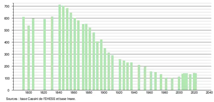 - Population municipale légale en vigueur au 1er janvier 2024, millésimée 2021, définie dans les limites territoriales en vigueur au 1er janvier 2023, date de référence statistique : 1er janvier 2021.