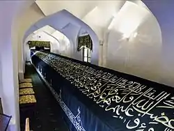 La sépulture du prophète Daniel avait initialement été installée dans la Suse antique (actuel territoire de l'ostan de Khouzistan) en Iran. Amir Timour fit transporter, à la fin du XIVe siècle, la dépouille du prophète jusqu'à Samarcande pour renforcer la renommée de la sa capitale. Selon la légende, quand la caravane s'approcha de Samarcande, le cheval qui transportait les restes du prophète s'arrêta à l'endroit où se trouve aujourd'hui le tombeau. Timour décida d'enterrer les restes du prophète à cet endroit précis. Toujours suivant la légende un coup de sabot du cheval a marqué l'emplacement de la source d'une eau réputée curative, selon la légende[2]. Après la construction du mausolée, au fil des années, la dépouille aurait commencé à croître de quelques centimètres chaque année, atteignant aujourd'hui une longueur de 18 mètres environ[4]. Le cercueil et le mausolée ont été périodiquement allongé par les mollahs et au début du XXe siècle un long mausolée rectangulaire a été construit pour l'abriter. Il est dominé par cinq petits dômes selon les plans de l'architecte. Abdoukadyr Tchaldivar (ru)[5]. À l'intérieur du mausolée, se trouve le long cercueil dans lequel se trouvent la dépouille du prophète.