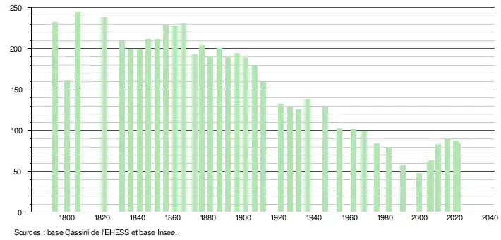 | Rang de la commune dans le département | 384 | 489 | 484 | 548 | 552 | 532 | 510 | 498 |