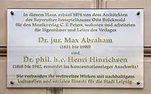 Le tombeau de la famille Abraham / Hinrichsen au cimetière du Sud de Leipzig a été rasé dans les années 1980. Depuis 1992, un mémorial se dresse à l'ancien emplacement.