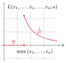 Dans le cas de l'estimation de la borne supérieure d'une loi uniforme, la vraisemblance ne peut pas être dérivée[18].