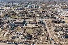 Vue aérienne de certains dégâts de la tornade de 2021.