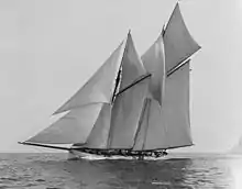 Le yacht Mayflower était le defender américain qui remporta la sixième coupe de l'America en 1886, face au challenger écossais Galatea du Royal Northern Yacht Club.