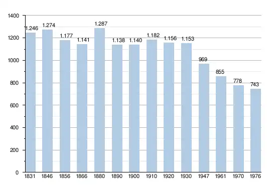 - Sources : INS, Rem. : 1831 jusqu'en 1970 = recensements, 1976 = nombre d'habitants au 31 décembre[2].