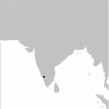Cette espèce est endémique du sud des Ghats occidentaux en Inde[1]. On la trouve à une altitude allant de 700 à 1 100 m d'altitude[2].