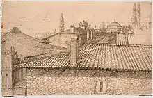 Des trois années et demi passées dans la capitale turque, Lorck en a passé une et demi avec l'entourage confiné dans le caravansérail d'Elçi Hanı (tr) où les Germains s'étaient installés. Dans celui-ci, Lorck a réalisé des portraits gravés de Busbecq (voir ci-contre) et de ses co-ambassadeurs Ferenc Zay (hu)[5] et Antun Vrancic (Antonius Verantius), quelques dessins d'animaux et une vue des toits de la ville (voir ci-contre). Dans les périodes de plus grande liberté, il dessine des monuments anciens et modernes de la ville ainsi que coutumes et habits de plusieurs sujets rencontrés dans divers endroits de l'Empire ottoman.