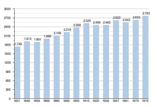 - Sources : INS, Rem. : 1831 jusqu'en 1970 = recensements, 1976 = nombre d'habitants au 31 décembre[2].