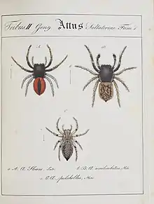 - Eugène Simon, « Révision des Attidae européens. Supplément à la monographie des Attides (Attidae Sund.) », Annales de la Société Entomologique de France, vol. 5, no 1, , p. 125-230, 329-360