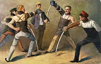 Les sociétés d'étudiants pratiquent ces combats selon des règles très strictes, celles-ci diffèrent selon les régions, raison pour laquelle il existe des "Waffenring" (cercles d'armes) selon les régions dans lesquelles ces différentes corporations se reconnaissent.