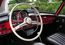La 190SL présentait déjà beaucoup d'options en série pour l'époque dont un tableau de bord extrêmement bien fourni (compte-tours moteur, pression d’huile, niveau de batterie, etc.), trousse à outils, allume-cigare, pendule électrique, essuie-glace 2-vitesses + intermittents, éclairage intérieur conséquent, intérieur cuir, etc.